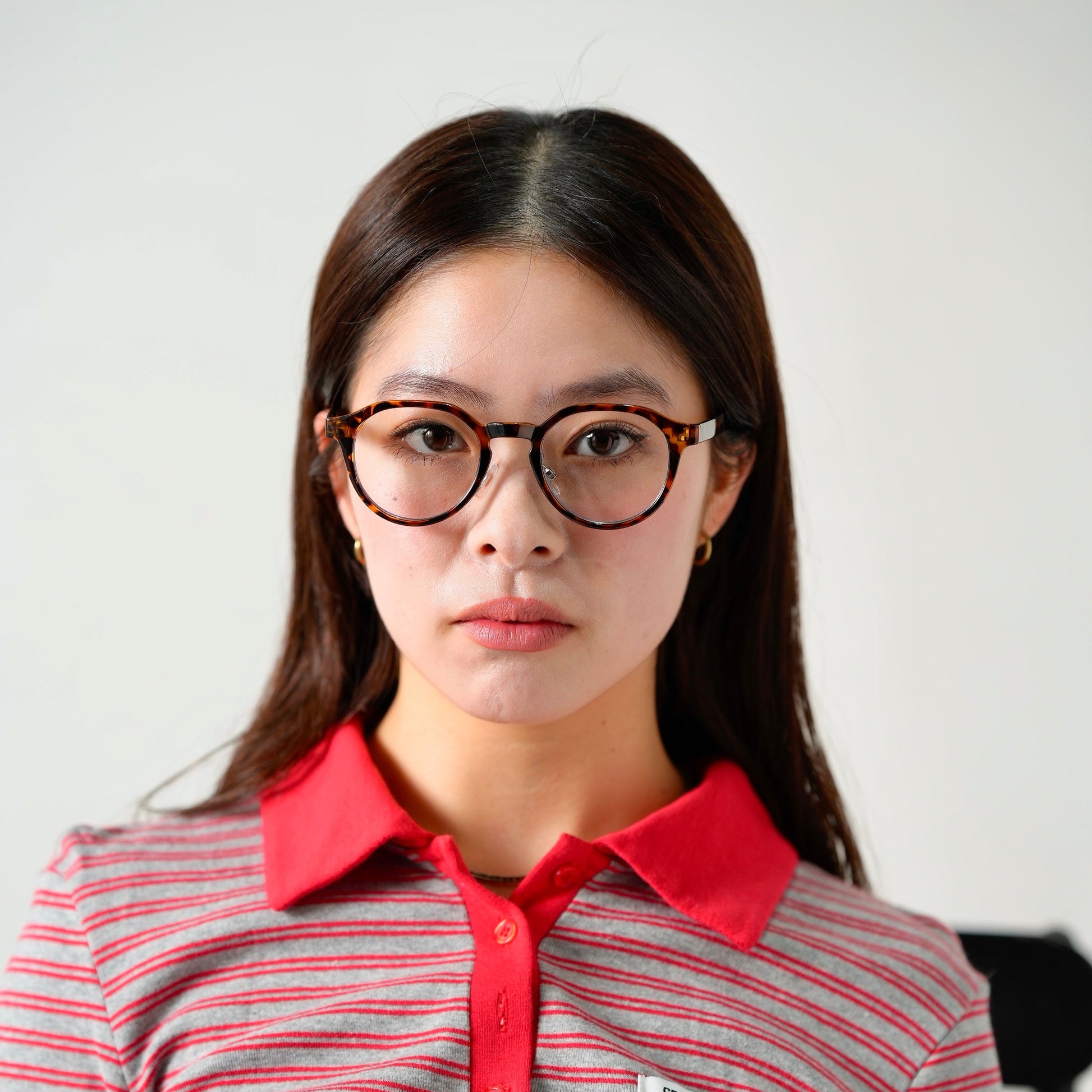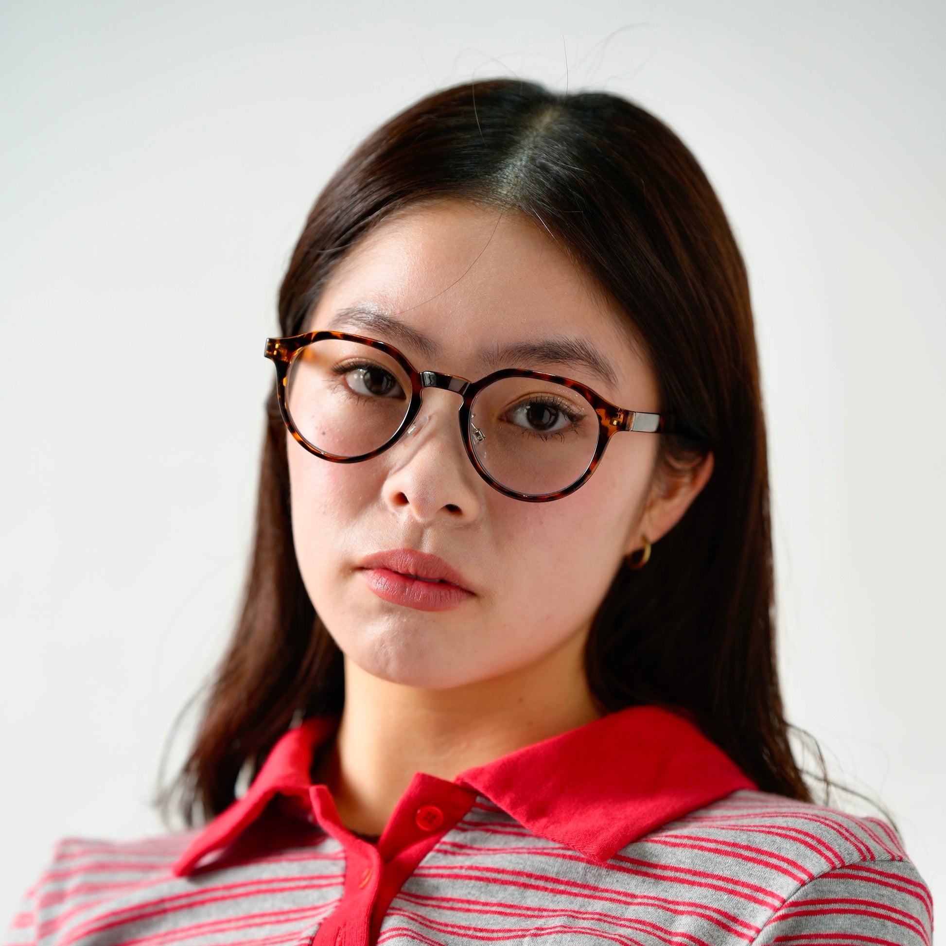 透明感のあるクリアレンズとデミ柄のフレームが絶妙なコントラストを生み、ヴィンテージライクで知的な印象を演出します。