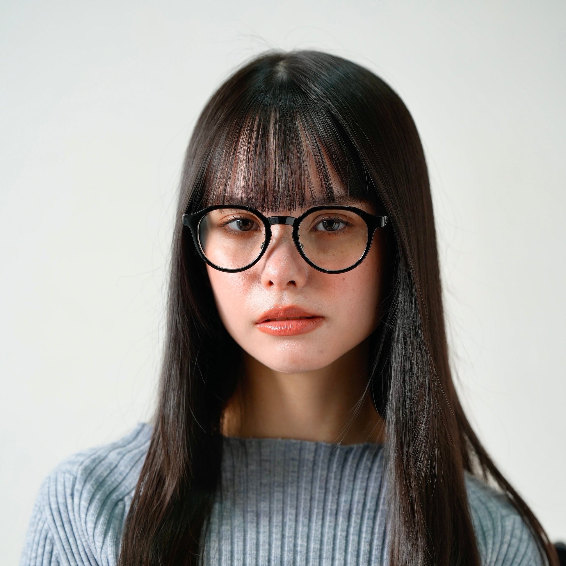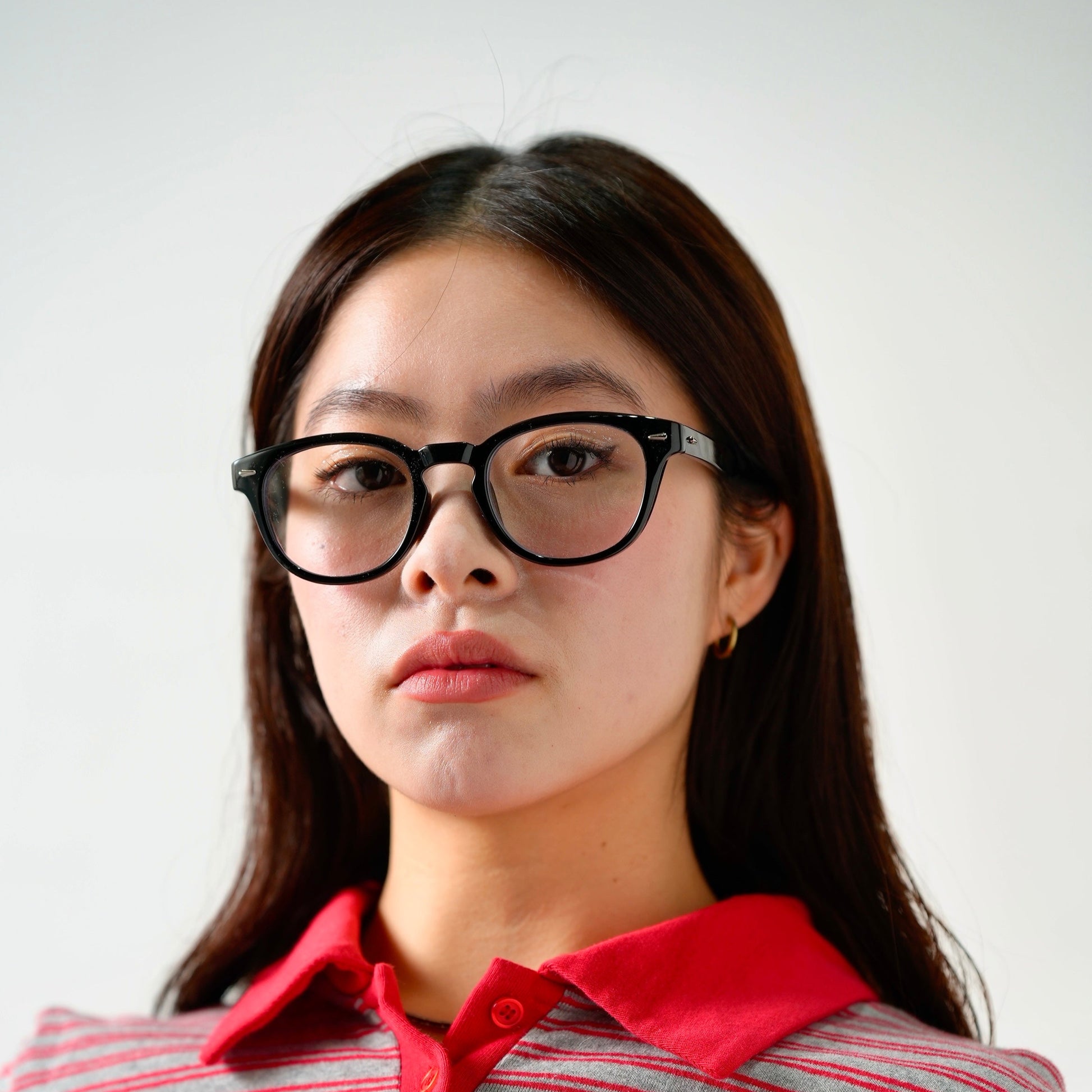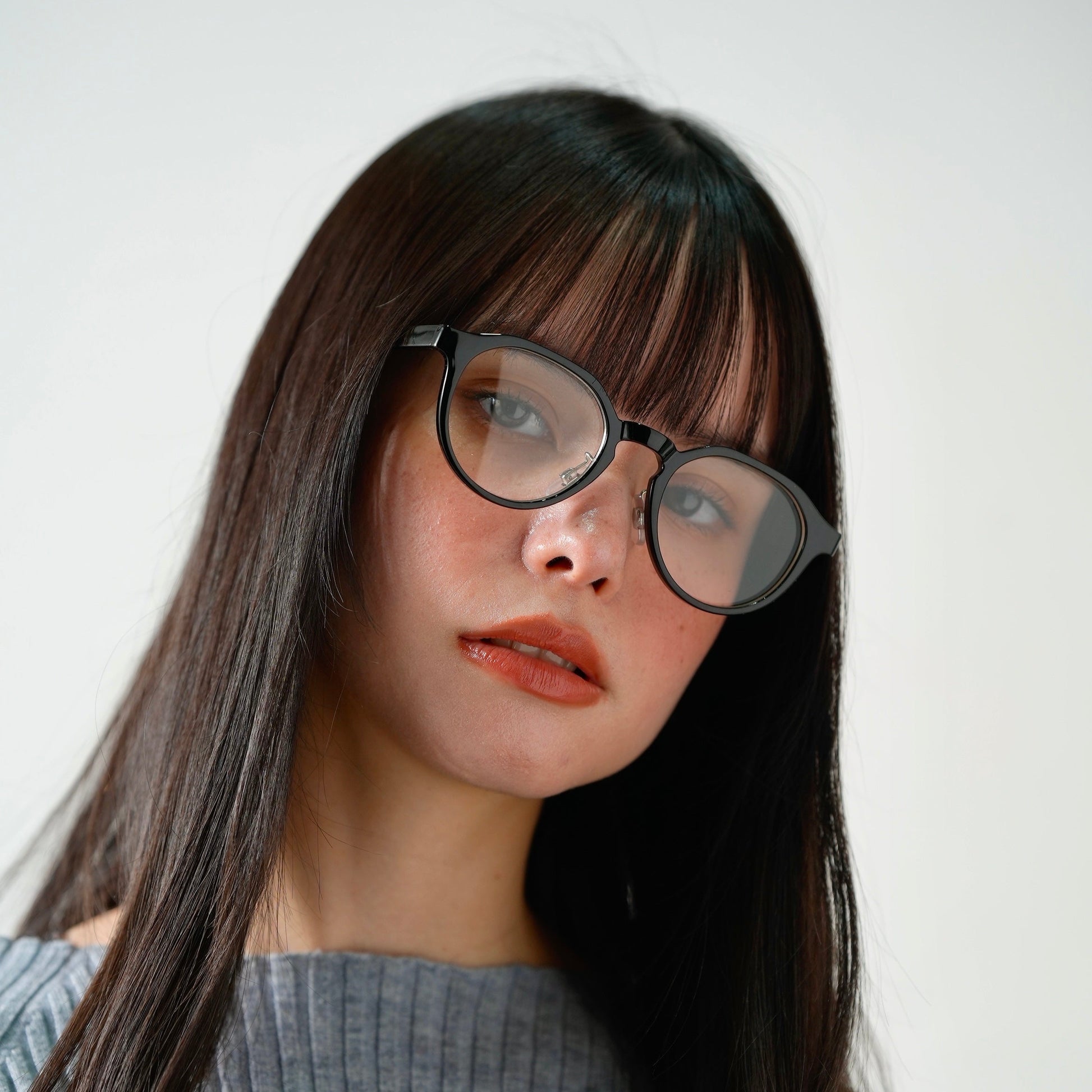 端正さと柔らかさを兼ね備えた「Ombre(オンブル)」──定番のブラックフレームにクリアレンズを合わせた、知的なウェリントンシェイプ。