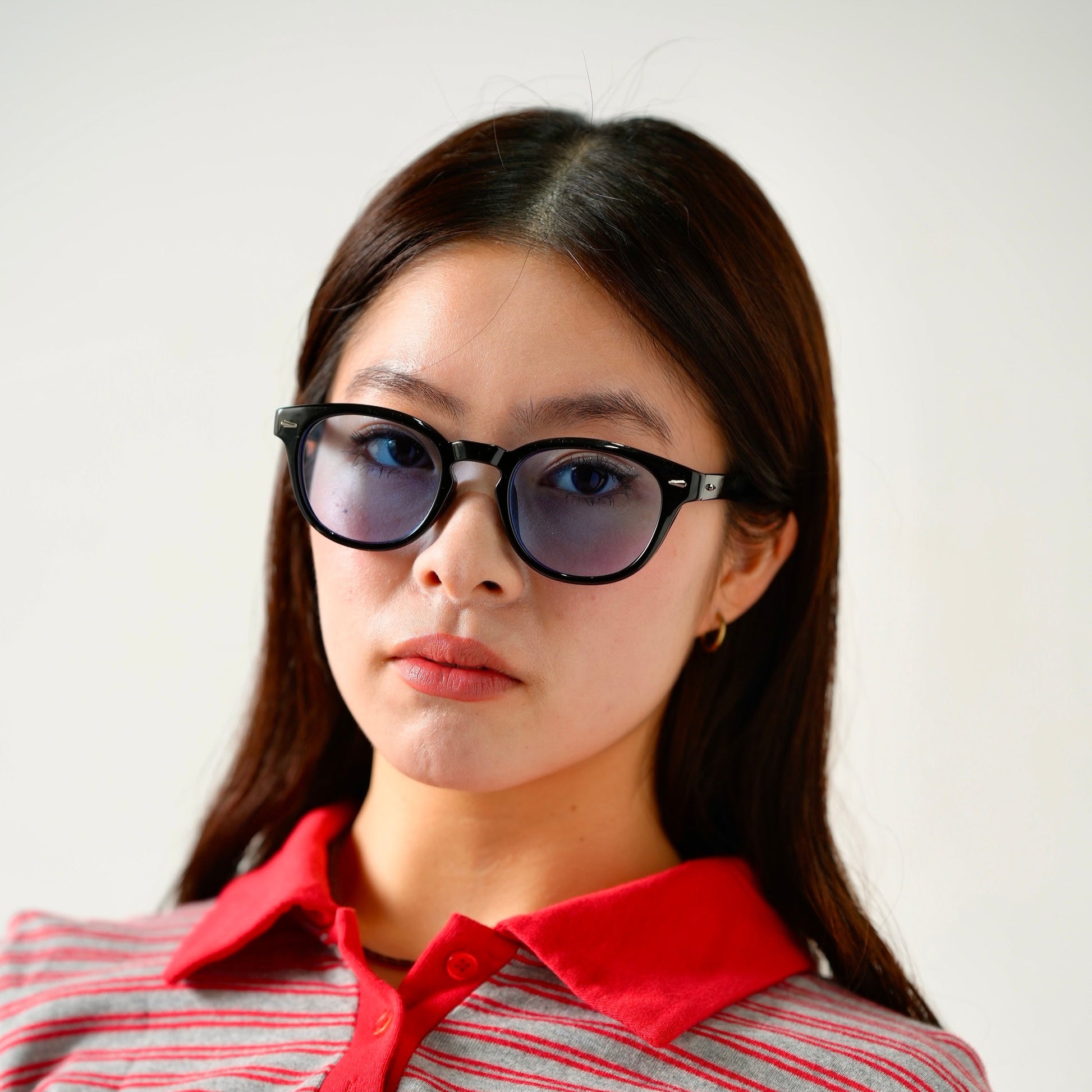 軽やかさとクールさを纏う「Ombre(オンブル)」──ブラックフレームにライトブルーのレンズを合わせた、洗練のウェリントンシェイプ。